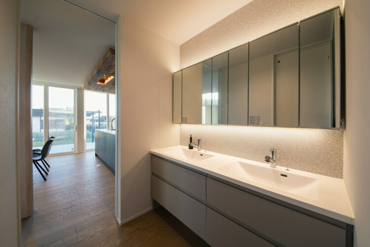 キッチンやリビングへ自然につながる動線で、家事の合間にも使いやすい場所に配置しました。