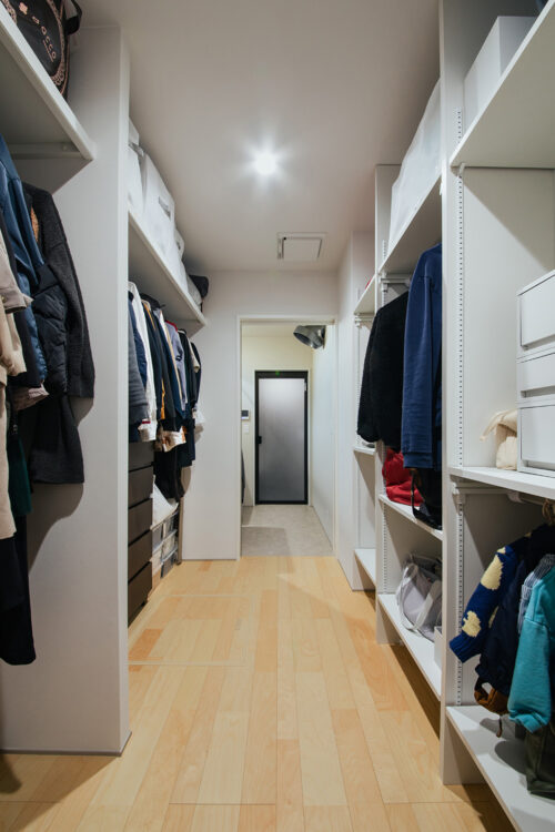 また、ご家族全員分の衣類はもちろん、季節の寝具やバッグなどもしっかり収納できる広さのウォークインクローゼットも
