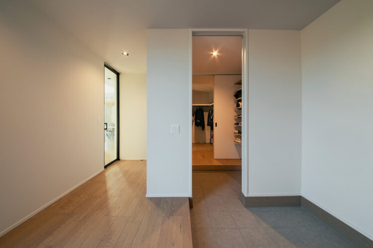 脱衣室と室内物干しが設置されたお部屋の間にはウォークインクローゼットを配置しました。