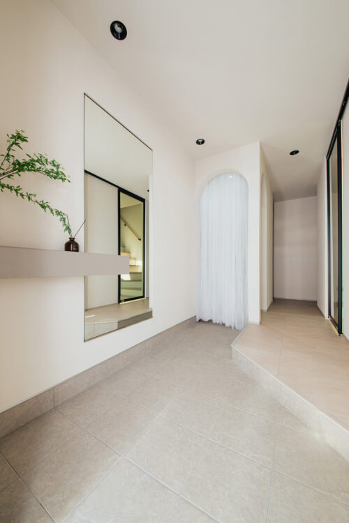 やわらかな光に包まれる、広がりのある玄関。