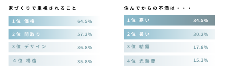 実際、建築後の住んでからの不満は「暑い、寒い」といった