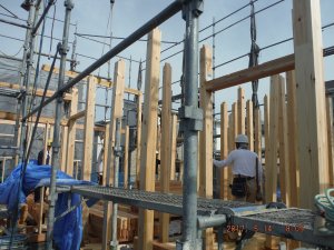あっという間に1階の梁がかけられていきました(^o^)
