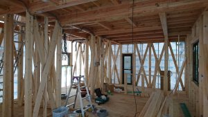 外部の防水シート張りを終え、内部の電気配線を行っています!