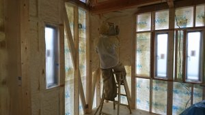 吹き付けた瞬間もこもこと膨らむ断熱材を見てると面白いですよ☆