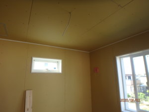 天井ボードの取り付けが終わり、この後は廻縁を施工します。