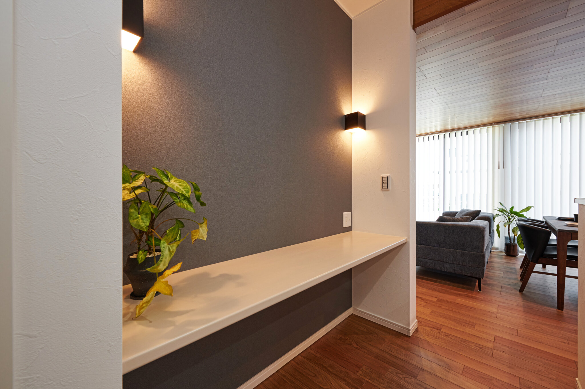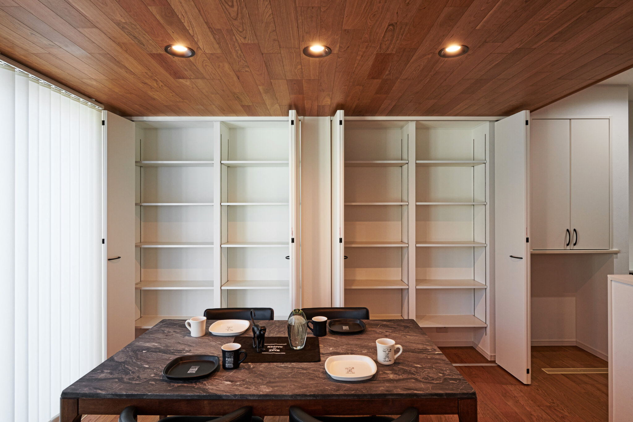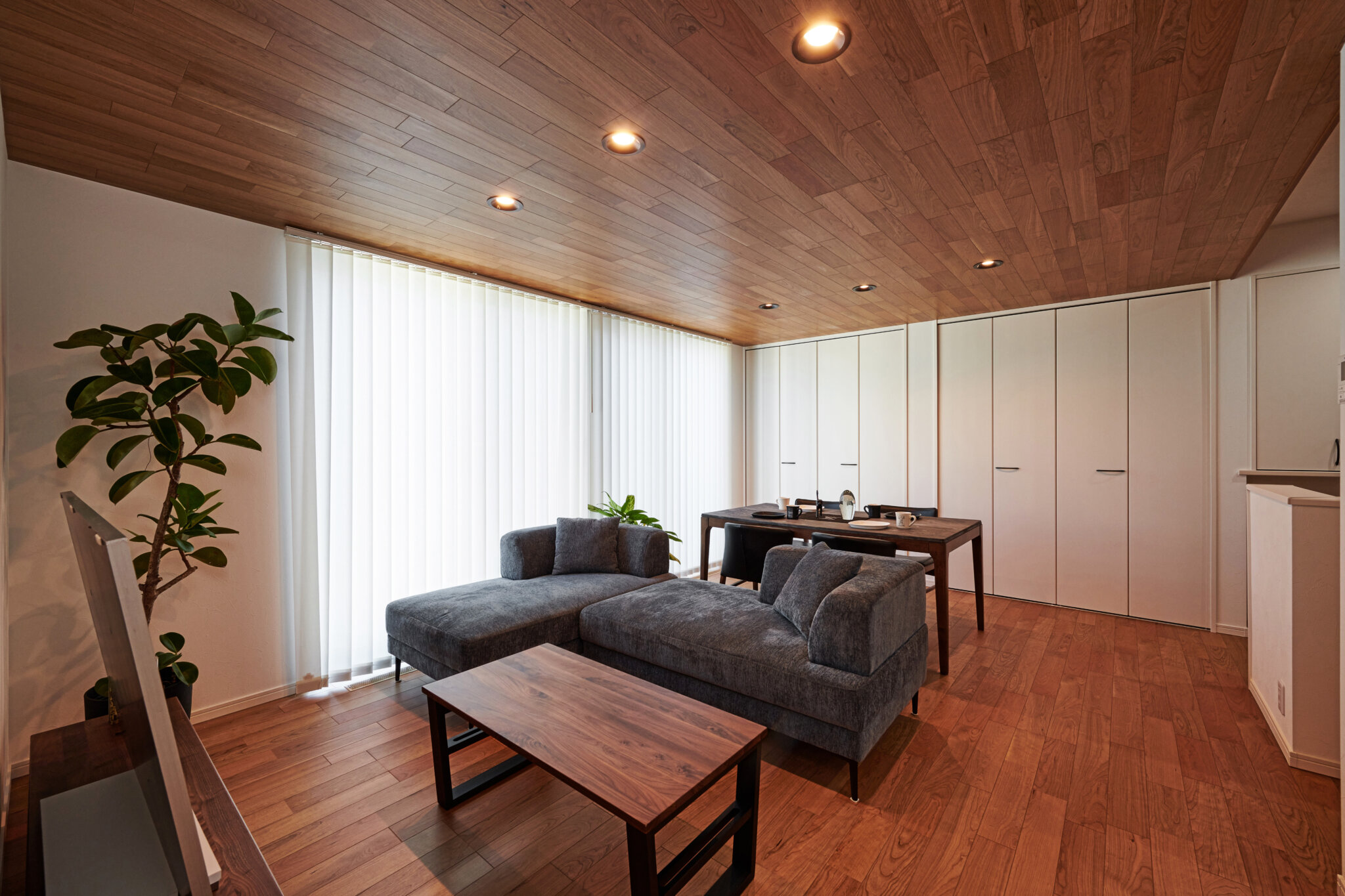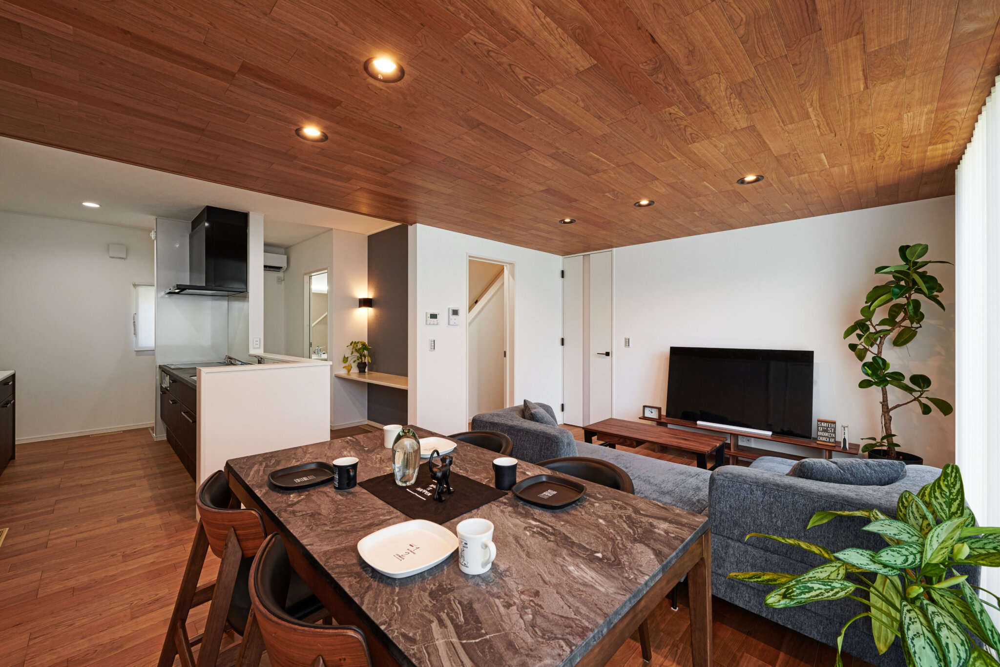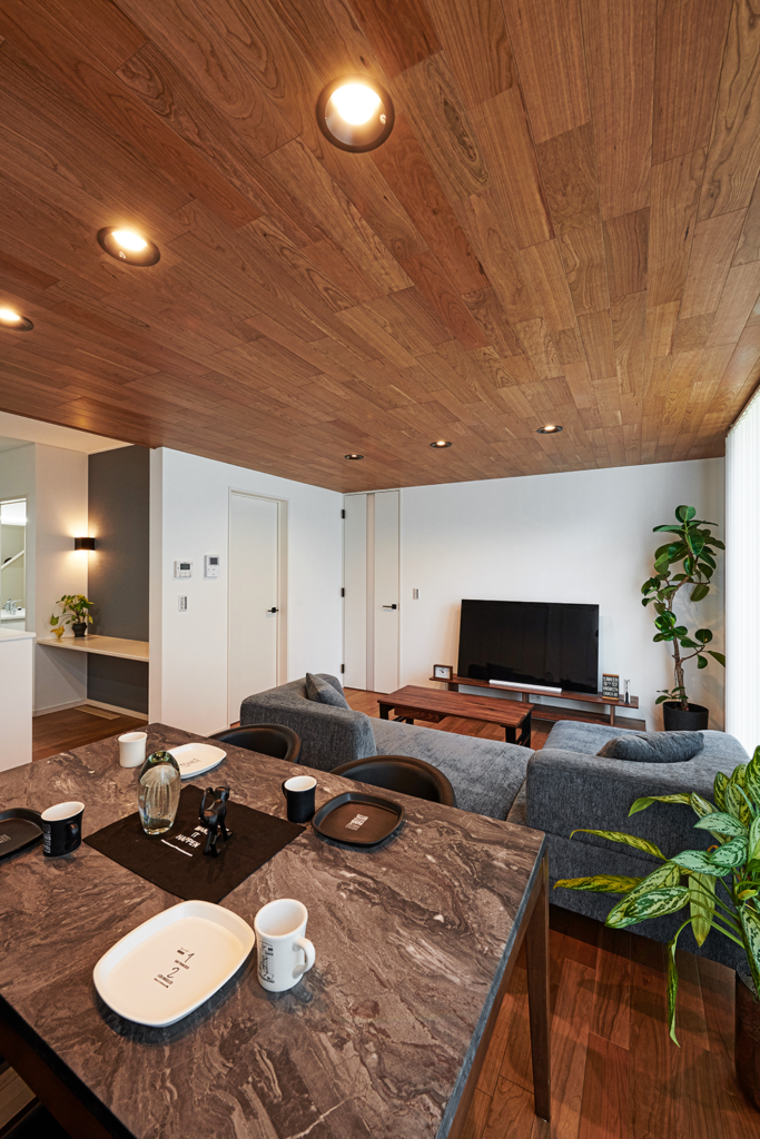 天井も木目のアクセントでスタイリッシュな空間に。