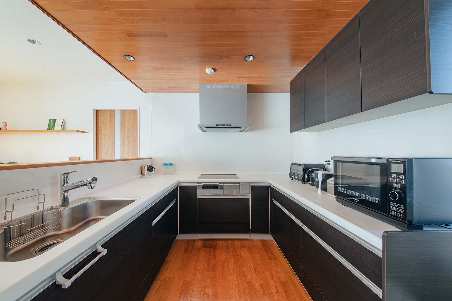 6帖のコの字型のキッチンは2人並んでも使いやすい大きさです。