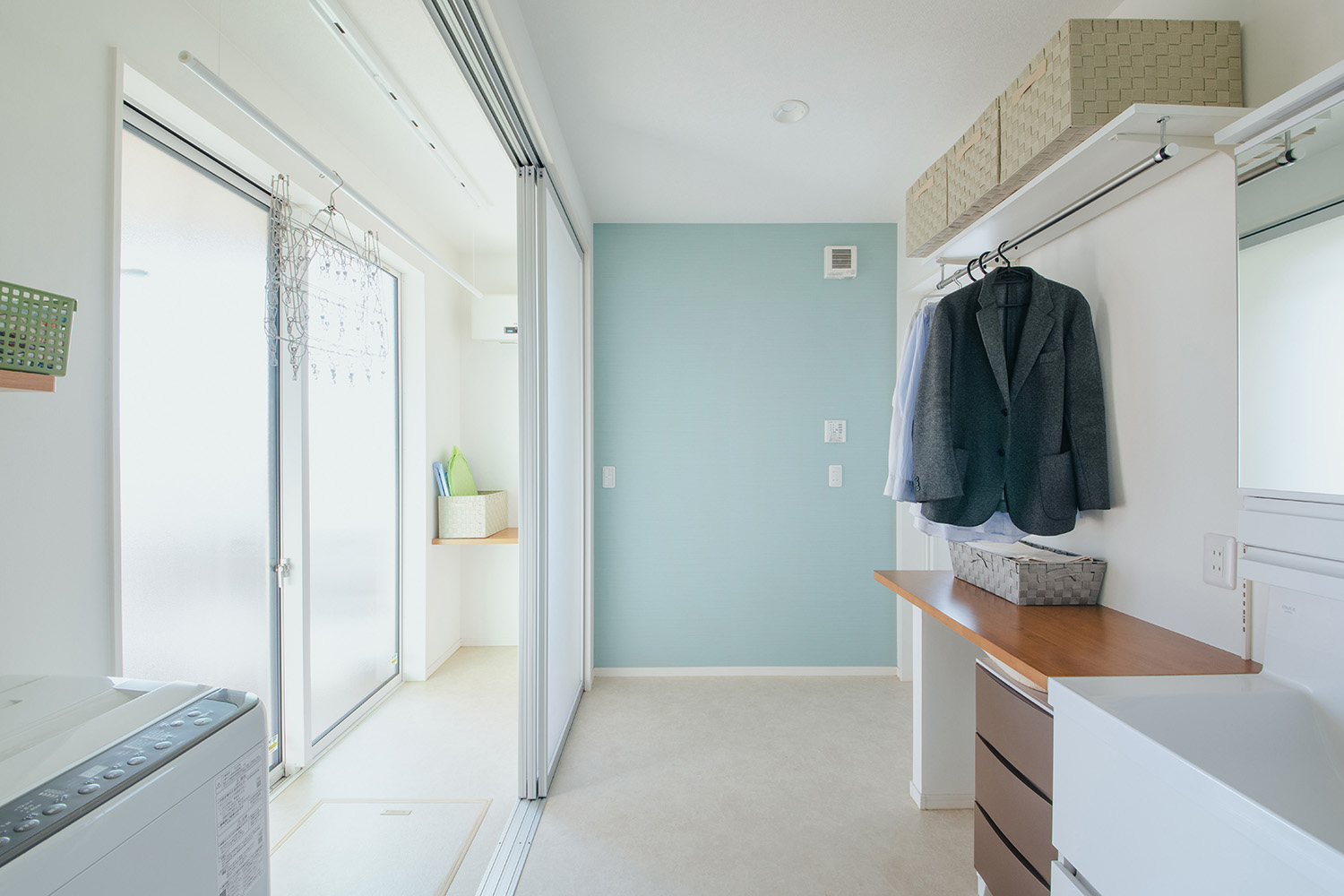 3帖の洗面脱衣室と隣接する室内欲しスペースです。