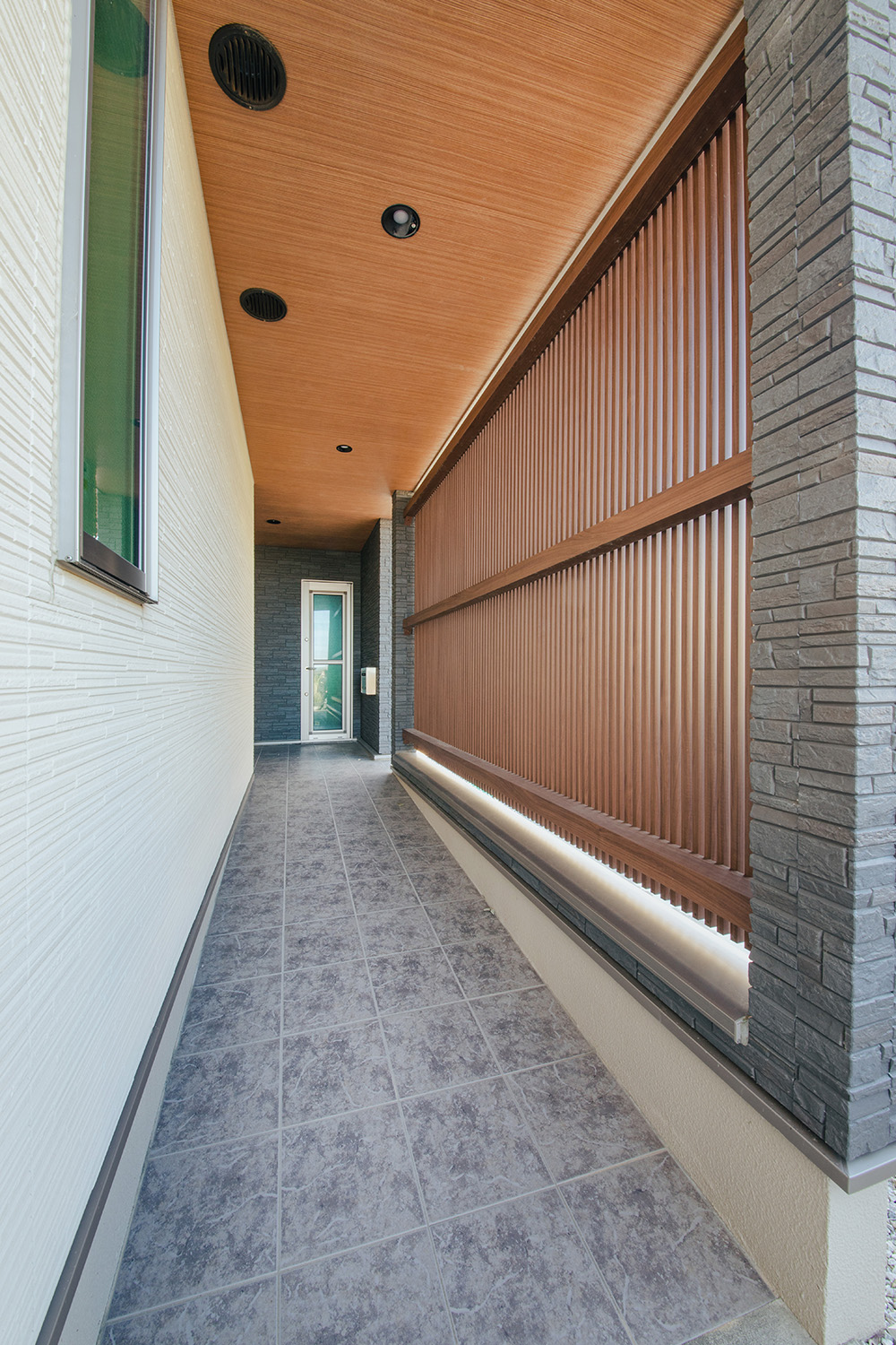 大型のアプローチはスロープにすることで、老後もお子様も安心です。