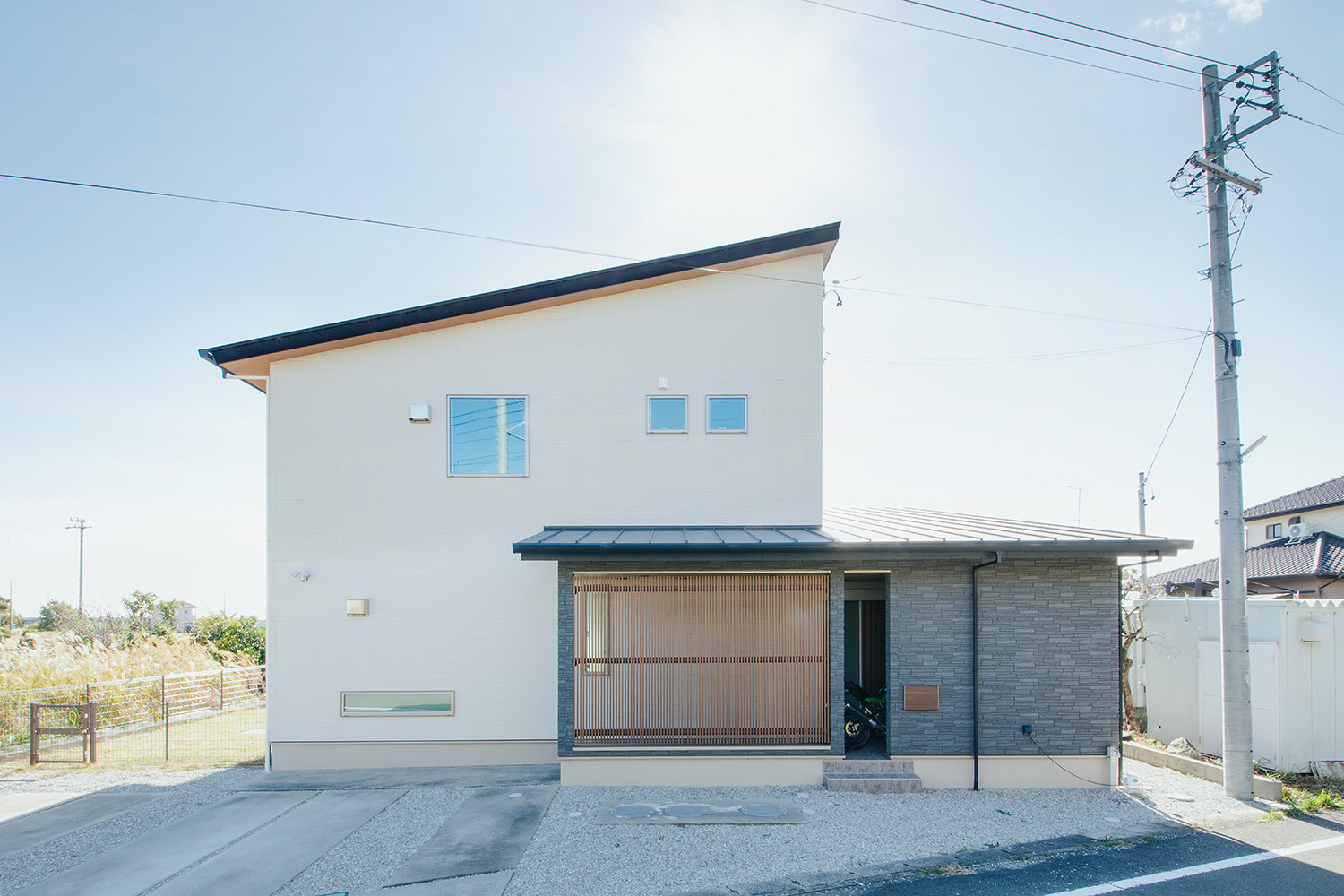 シンプルな外観にはコートラインを設けることで