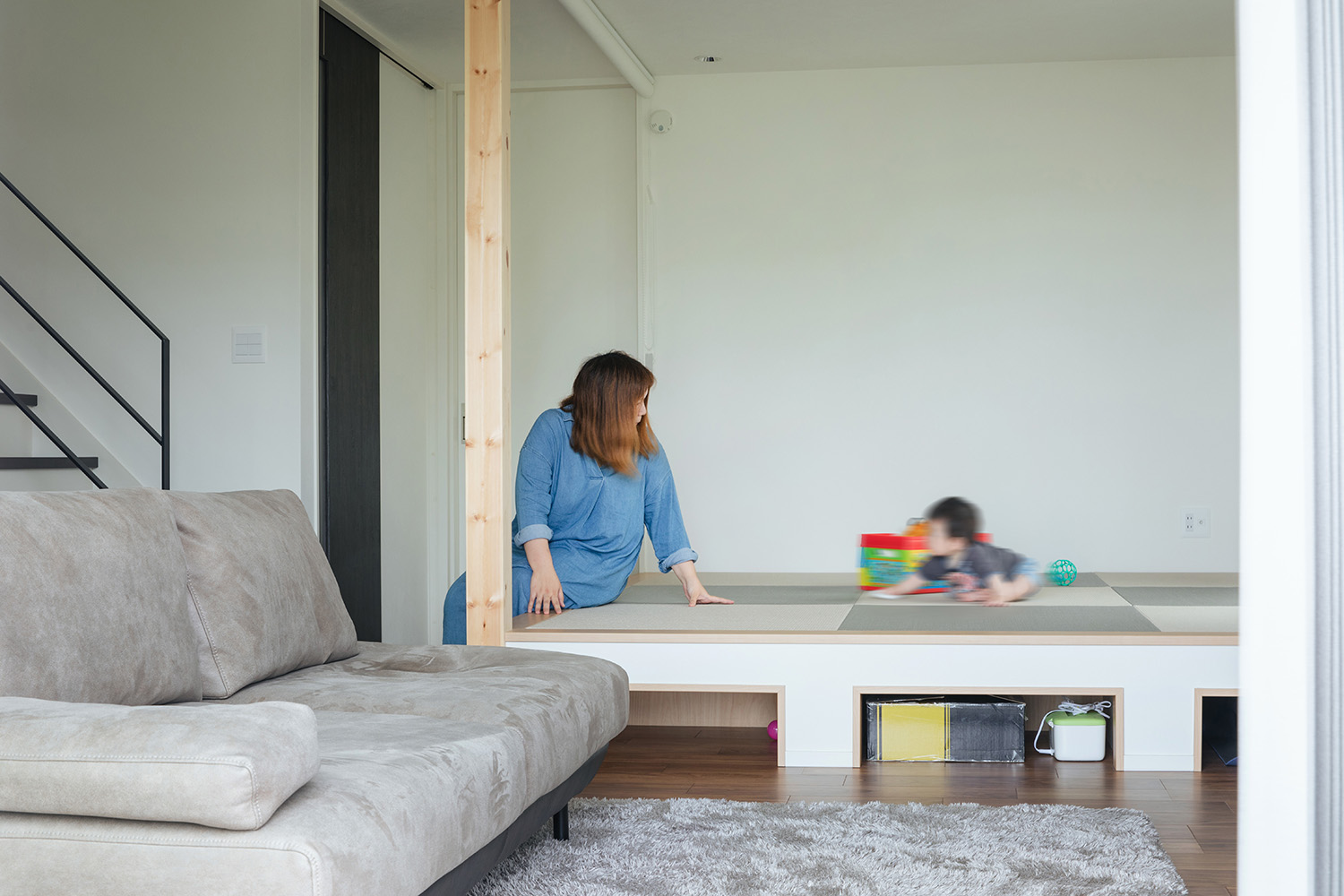 お子様のおもちゃ遊びやお昼寝にも重宝している小上がりの畳スペース。