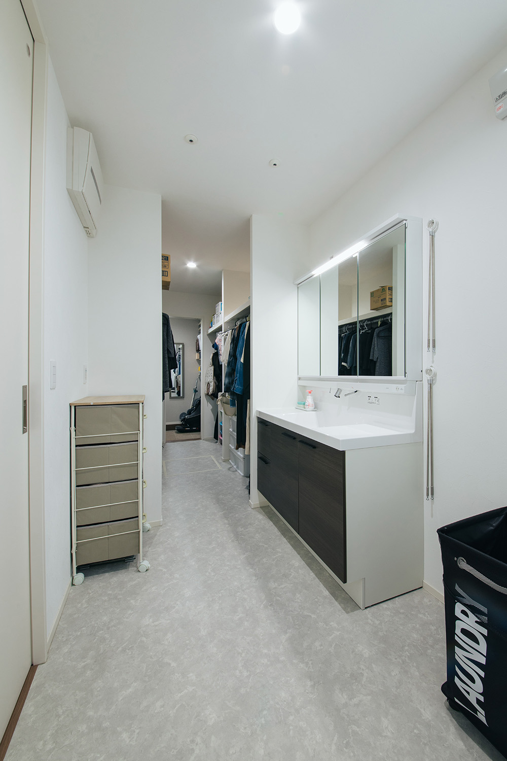 SC→ファミクロ→洗面スペースとランドリーへとつながる動線。