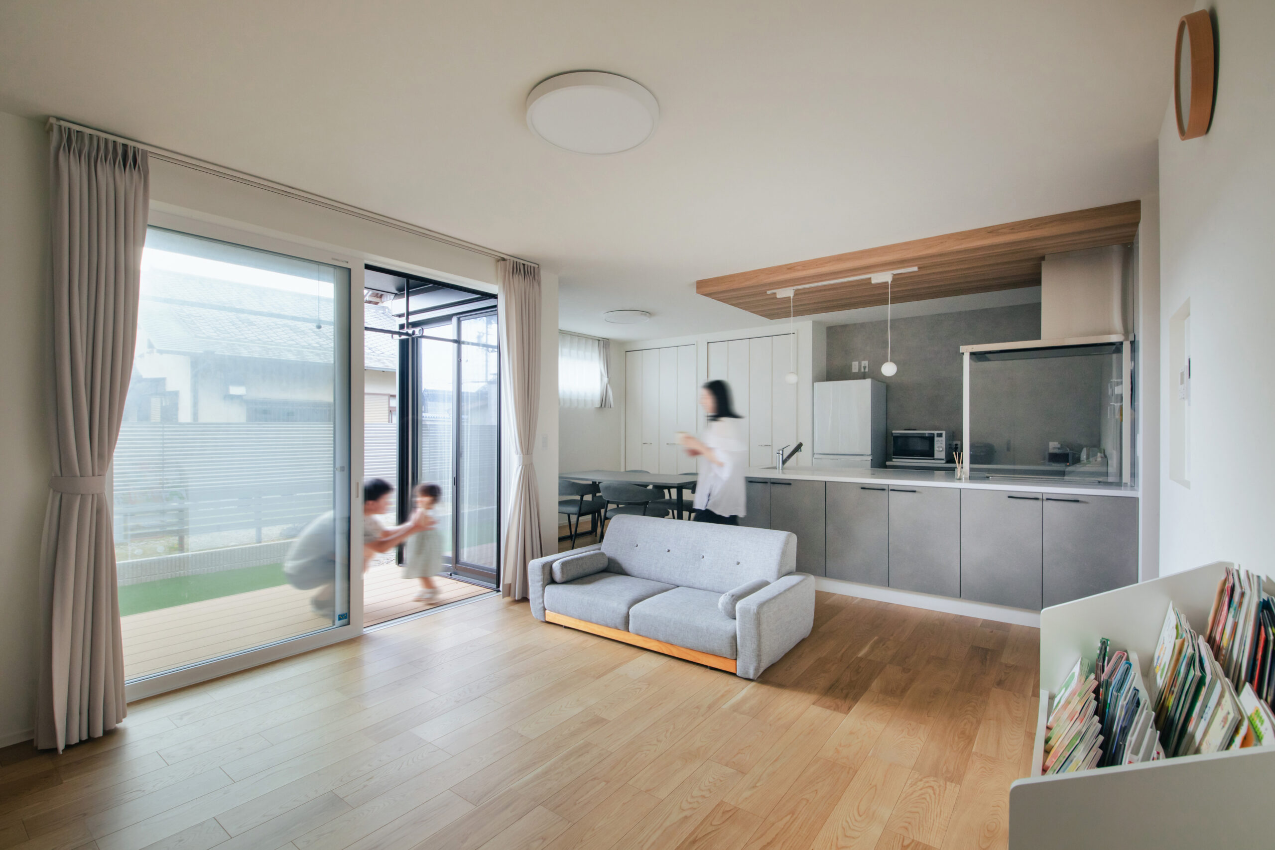 お庭で遊ぶお子様の様子がお料理中も見やすくて安心です。