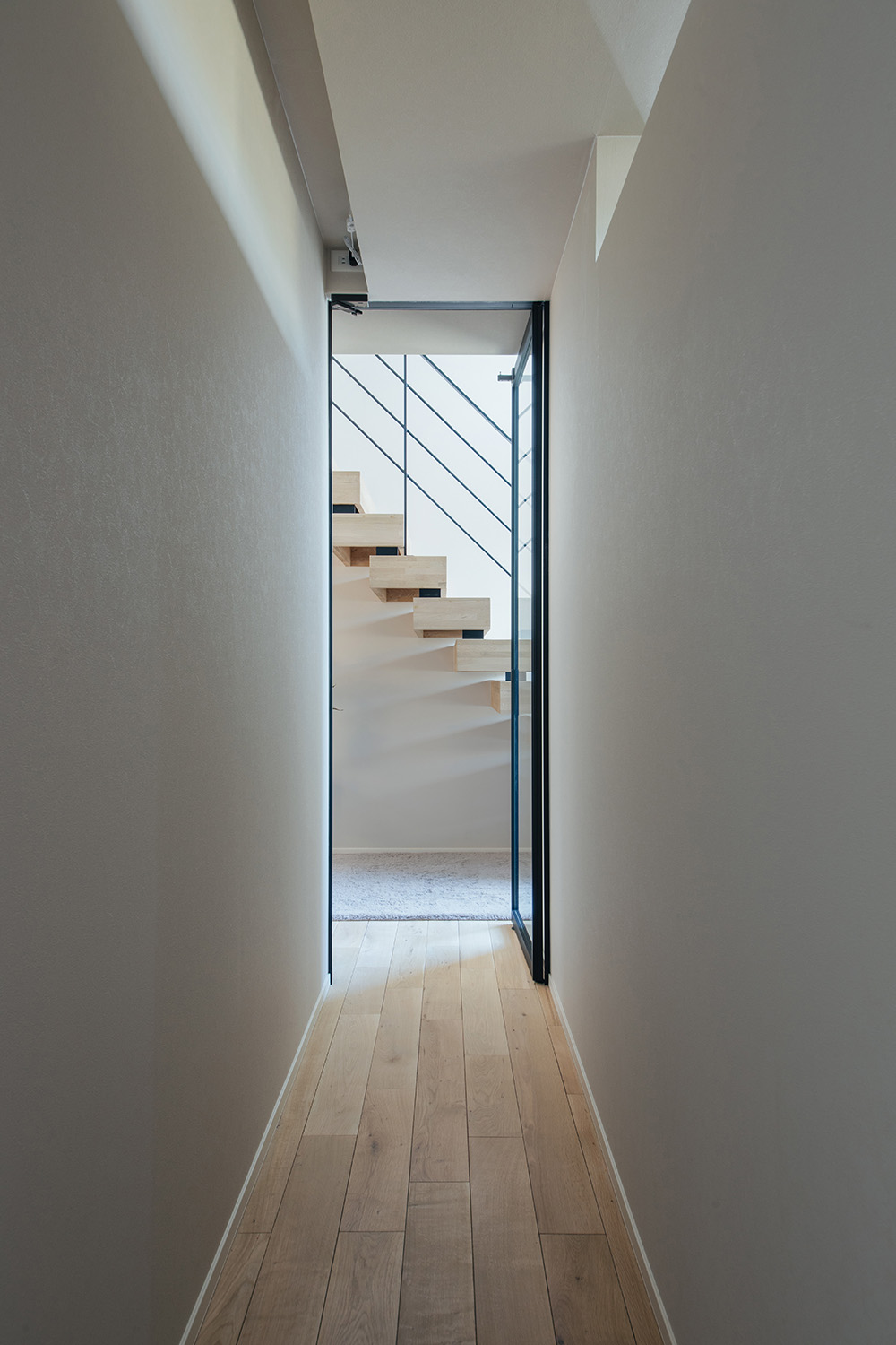 ボックス型の階段は窓からの光を受けて、落とす影も美しい。