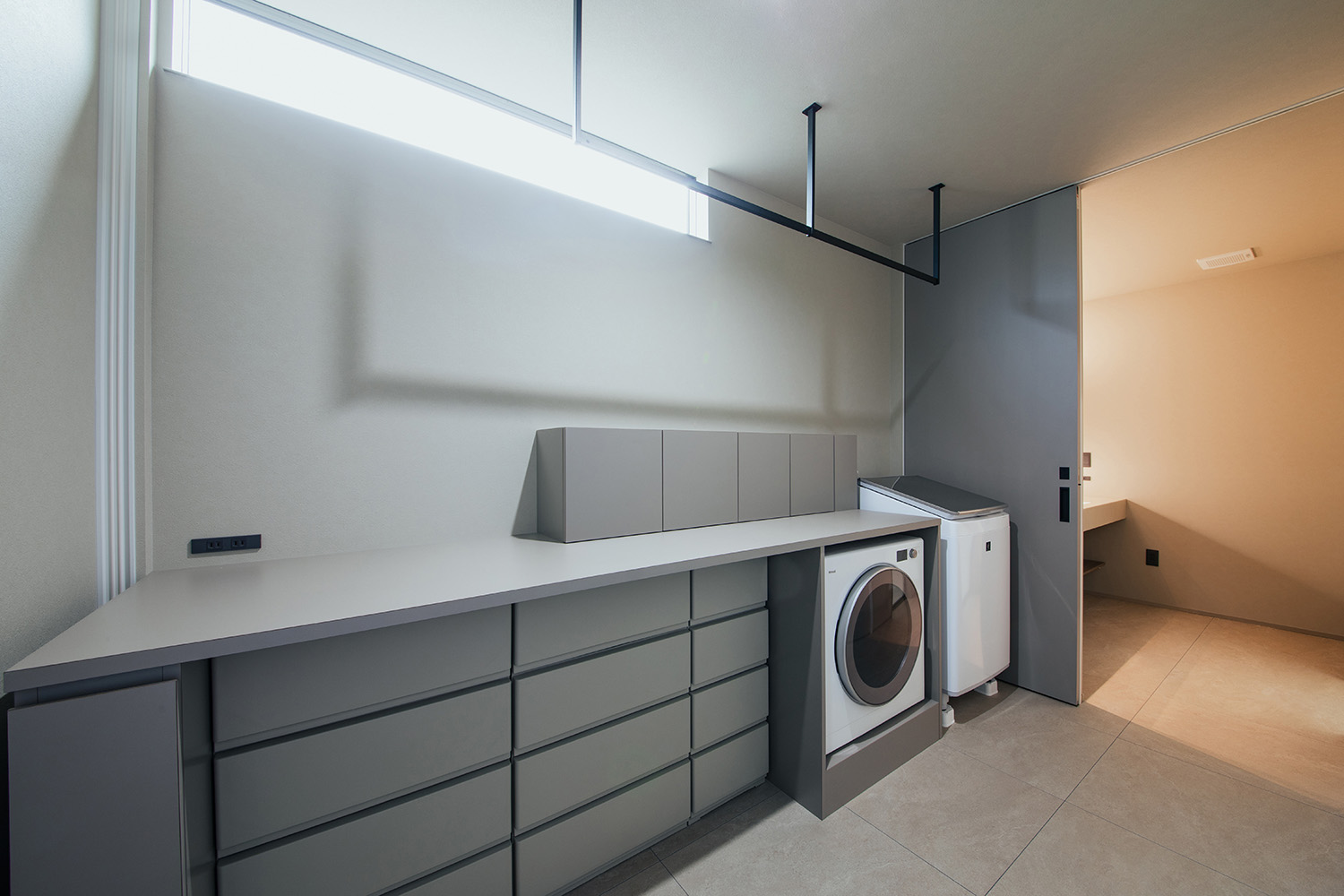 そのため、家事動線上に造作収納を設け、衣類を畳んですぐにしまえるよう工夫しています。