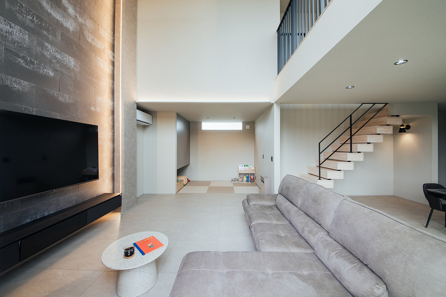 畳にはインテリアと調和するよう、グレージュカラーを採用。LDK全体の優しいトーンに馴染みながらも、和の落ち着きを感じられる空間に仕上がっています。