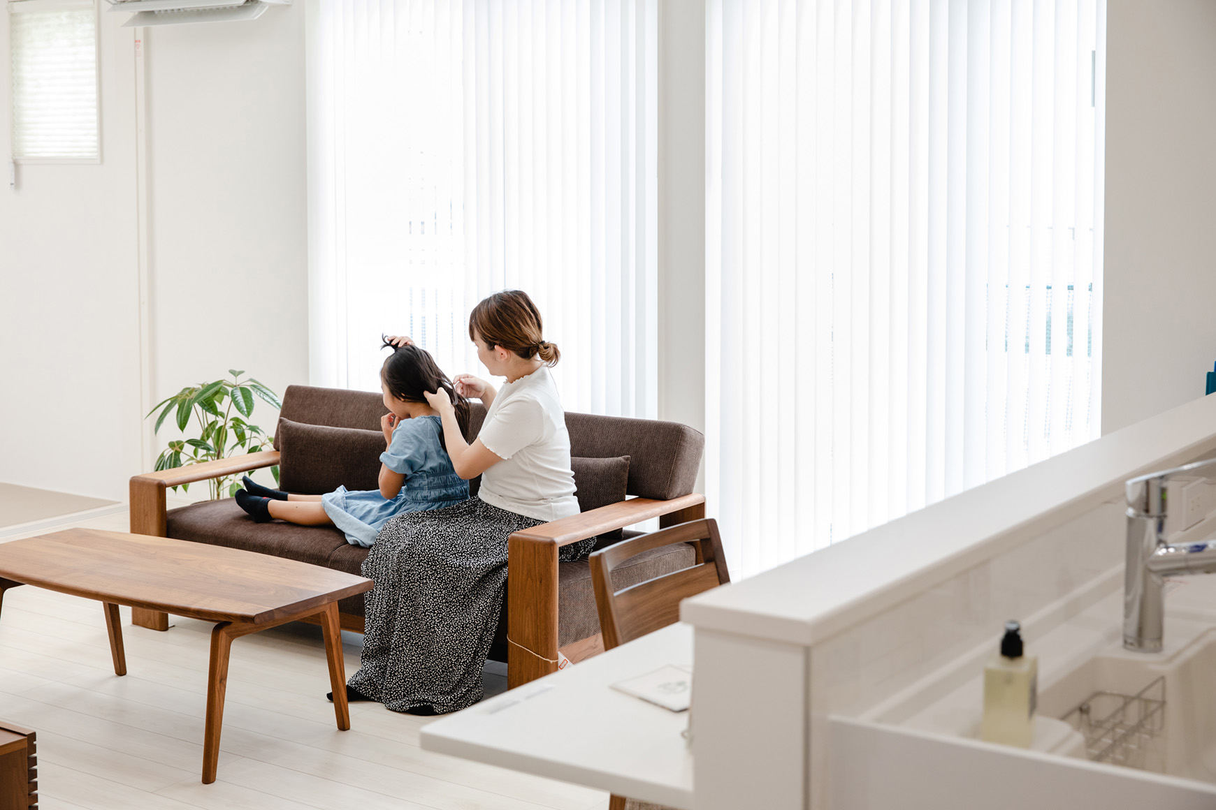 高気密・高断熱の構造に加えて床下エアコンを導入し、室内は年中快適。