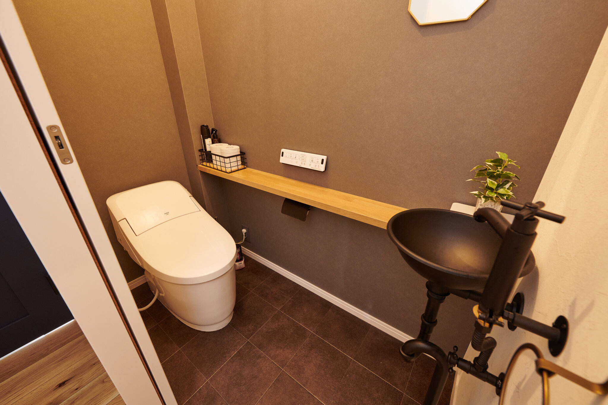 ブルックリンテイストによく似合うインダストリアルな雰囲気の手洗いがポイントのWC