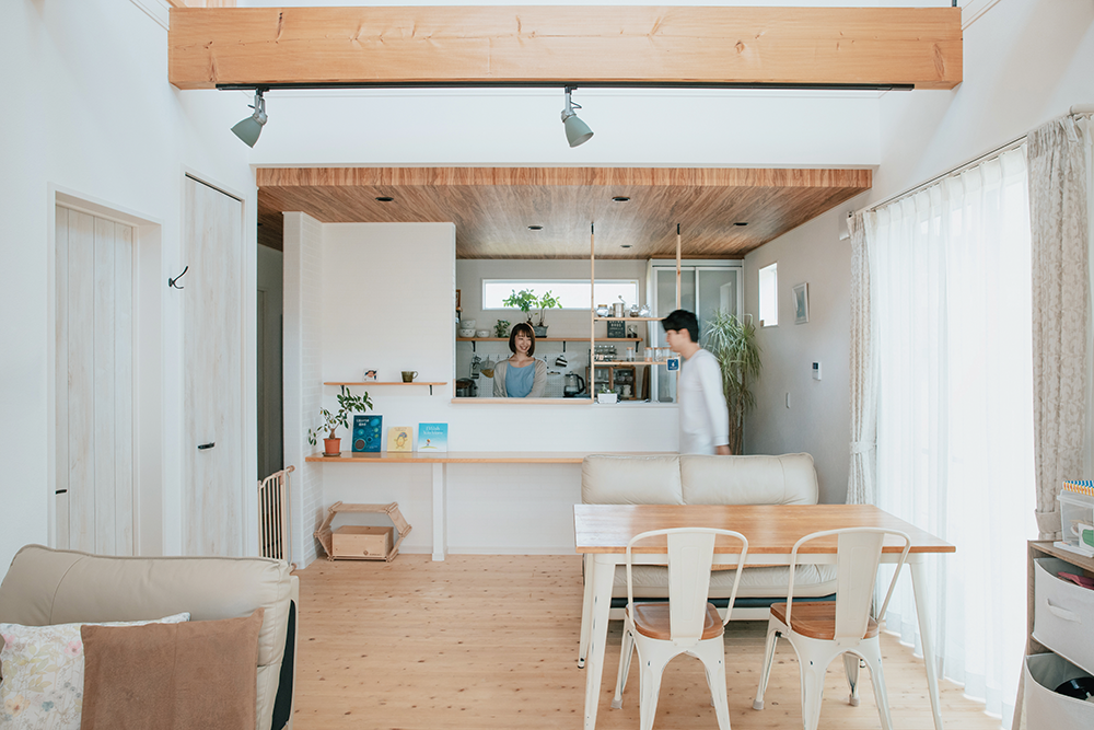 桧材の床材や、化粧梁などにふんだんに使われた無垢材で自然素材を感じられます。