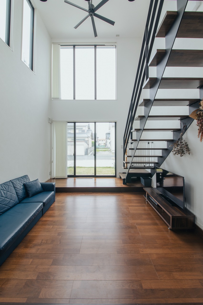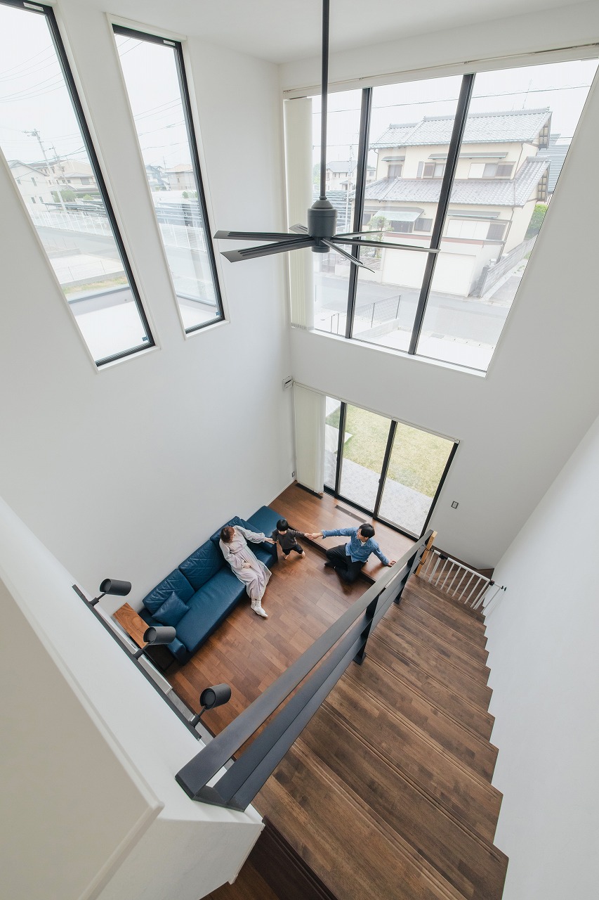 20帖のLDKは、8帖の吹抜けと大きなfix窓で開放感抜群。