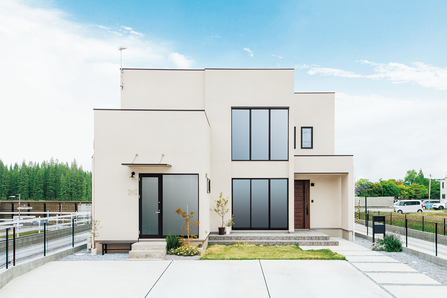 建築家・井上朝美先生と建てたデザイナーズ住宅です。箱を積み上げた立体的かつ洗練されたデザインが印象的な外観です。