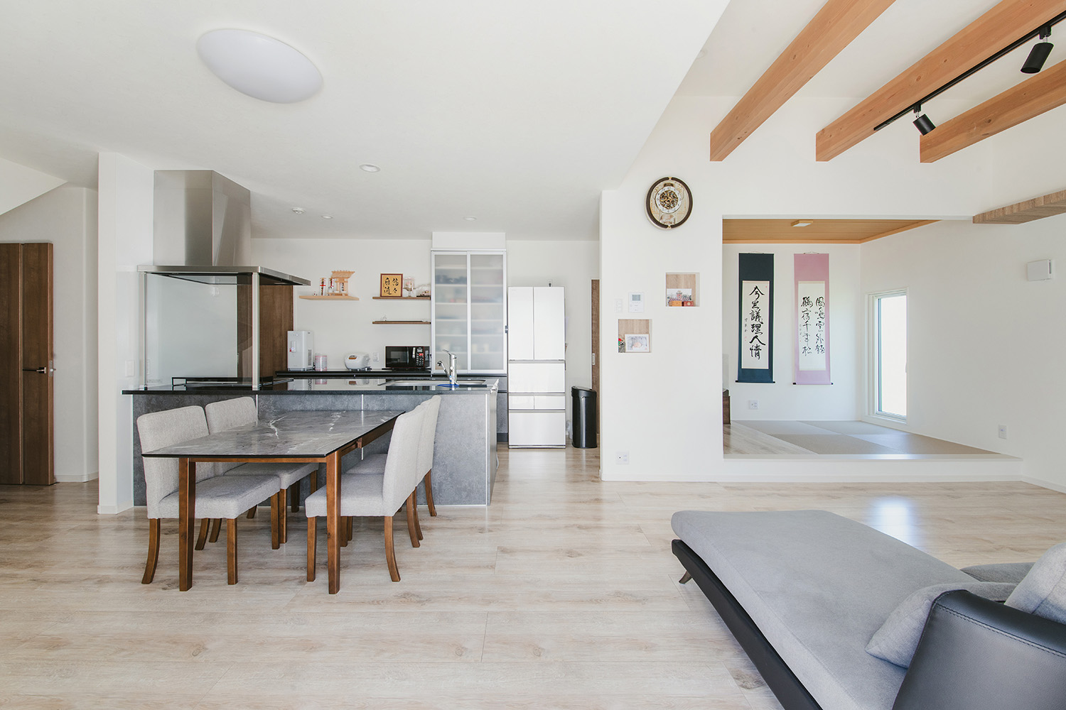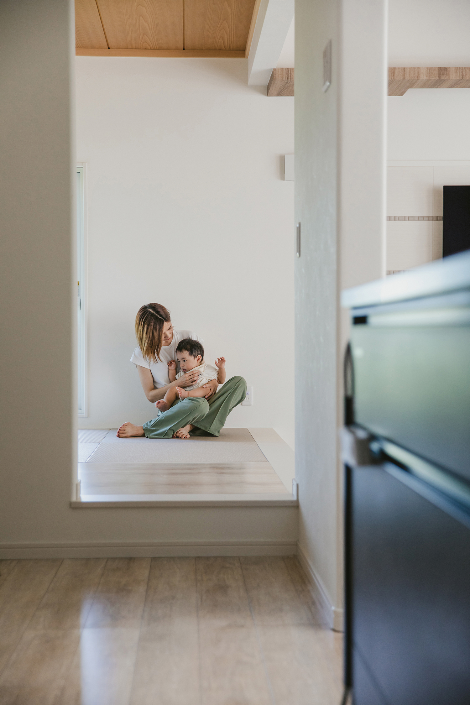 畳コーナーはリビングからもキッチンからもアクセスできます。お子さまの遊び場になったり、洗濯ものをたたんだり、ゴロゴロしたりフレキシブルに使える便利な空間です。