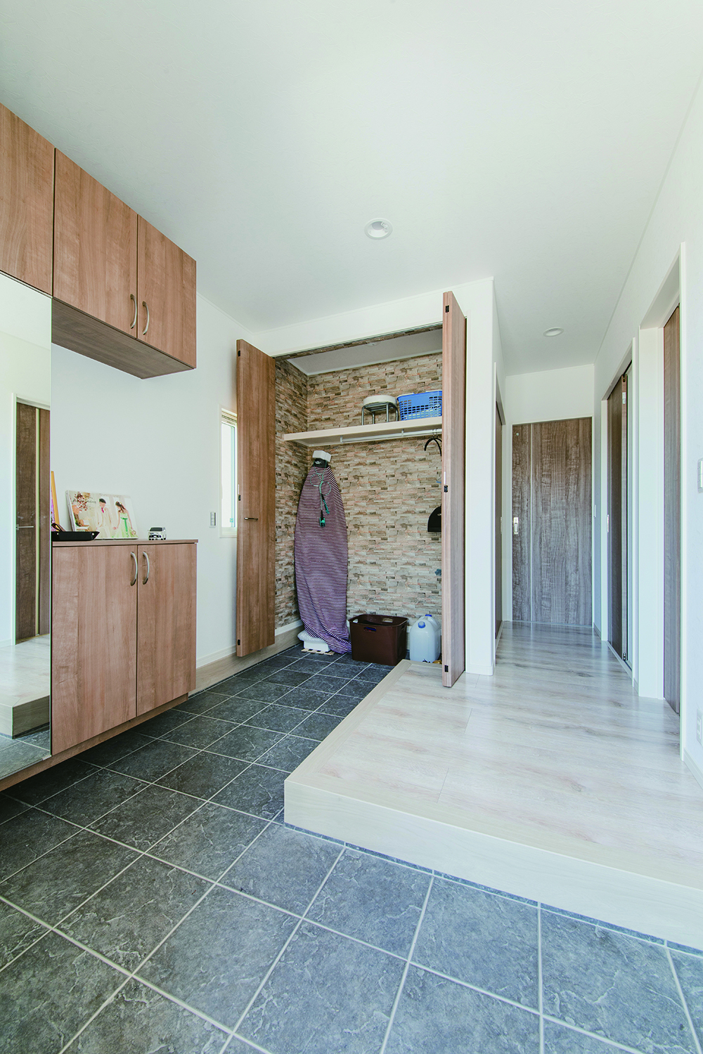 ご主人の趣味のサーフボードも楽々収納できる大きな土間収納を玄関に確保