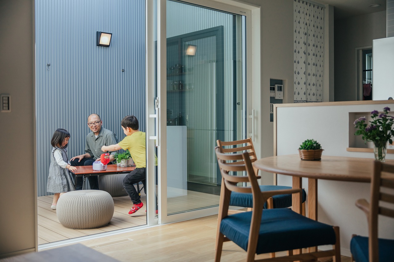 晴れた日には中庭でピクニック気分で食事をしたり、ご主人が本を読んだりと自由に使える中庭は、ご家族が繋がる大切な時間を作ります。