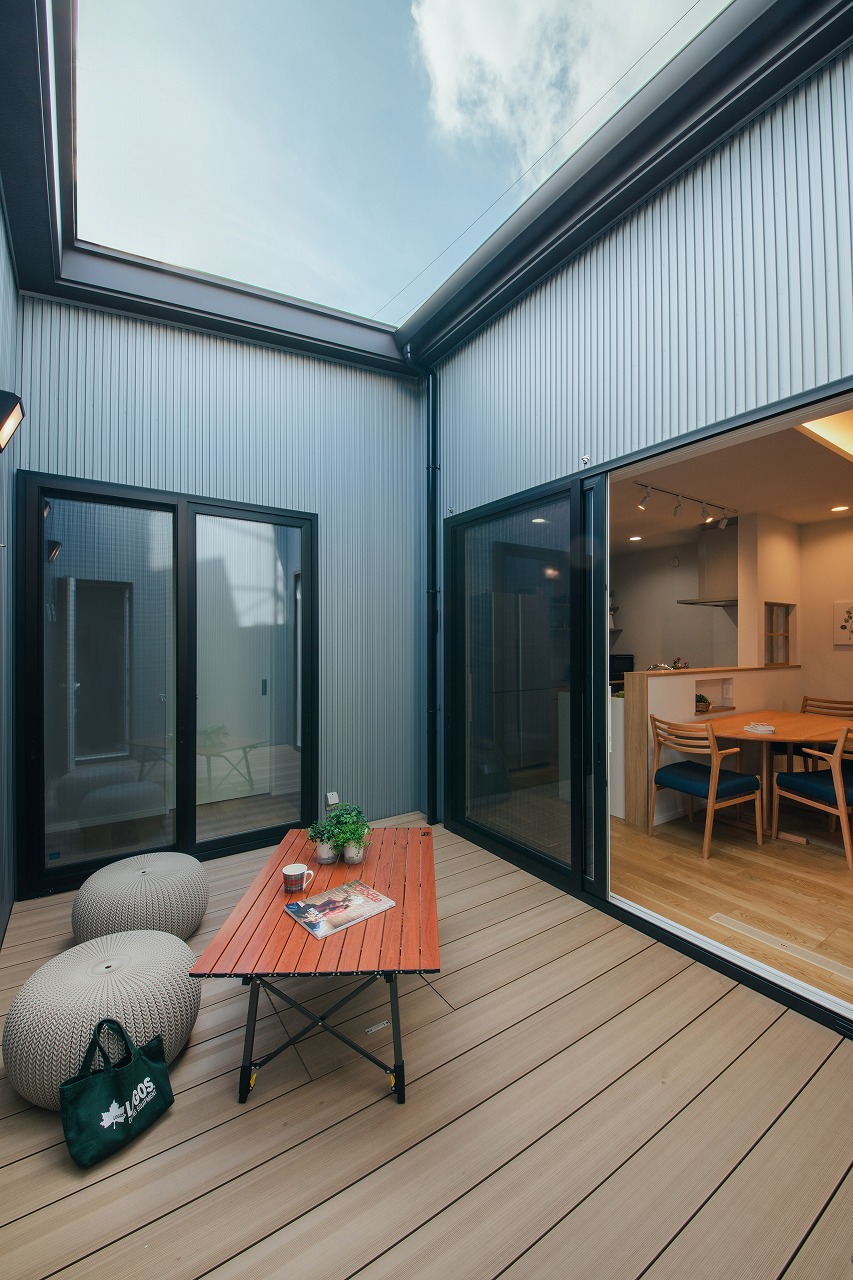 マンション暮らしではバルコニーにいても向かいの建物からの視線が気になっていたというお施主様。外からの視線をカットする中庭は心からリラックスできる場所になりました。