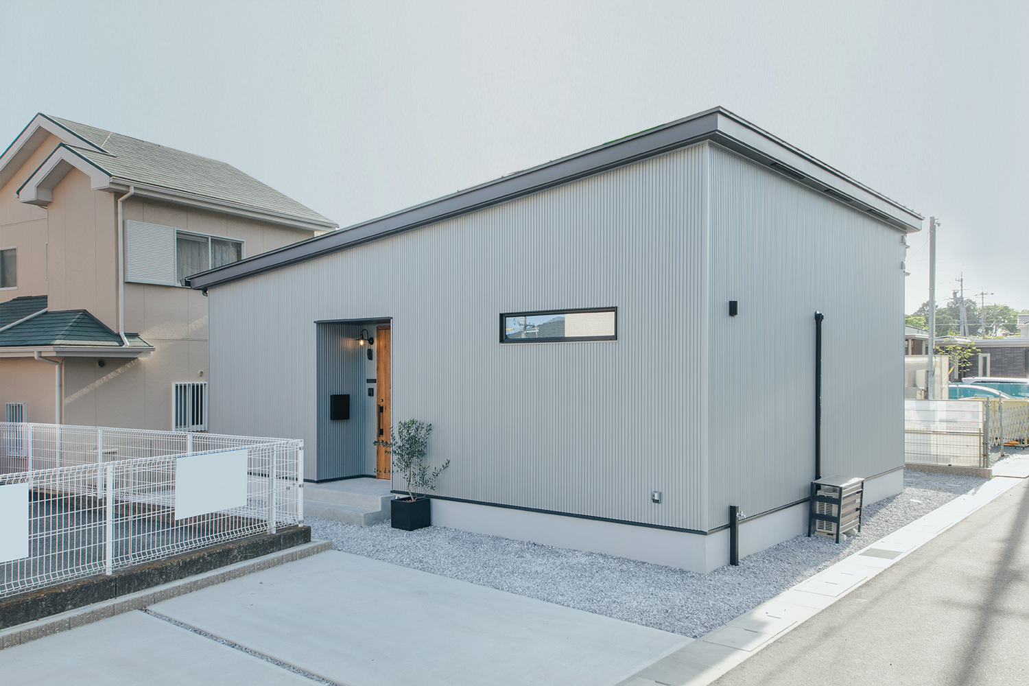 住宅街に建つため外観の窓は極力少なくし、プライバシーを確保しています。